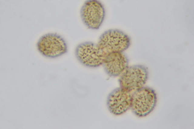 muy levemente verrugosas y amarillo ocráceas claras al microscopio.